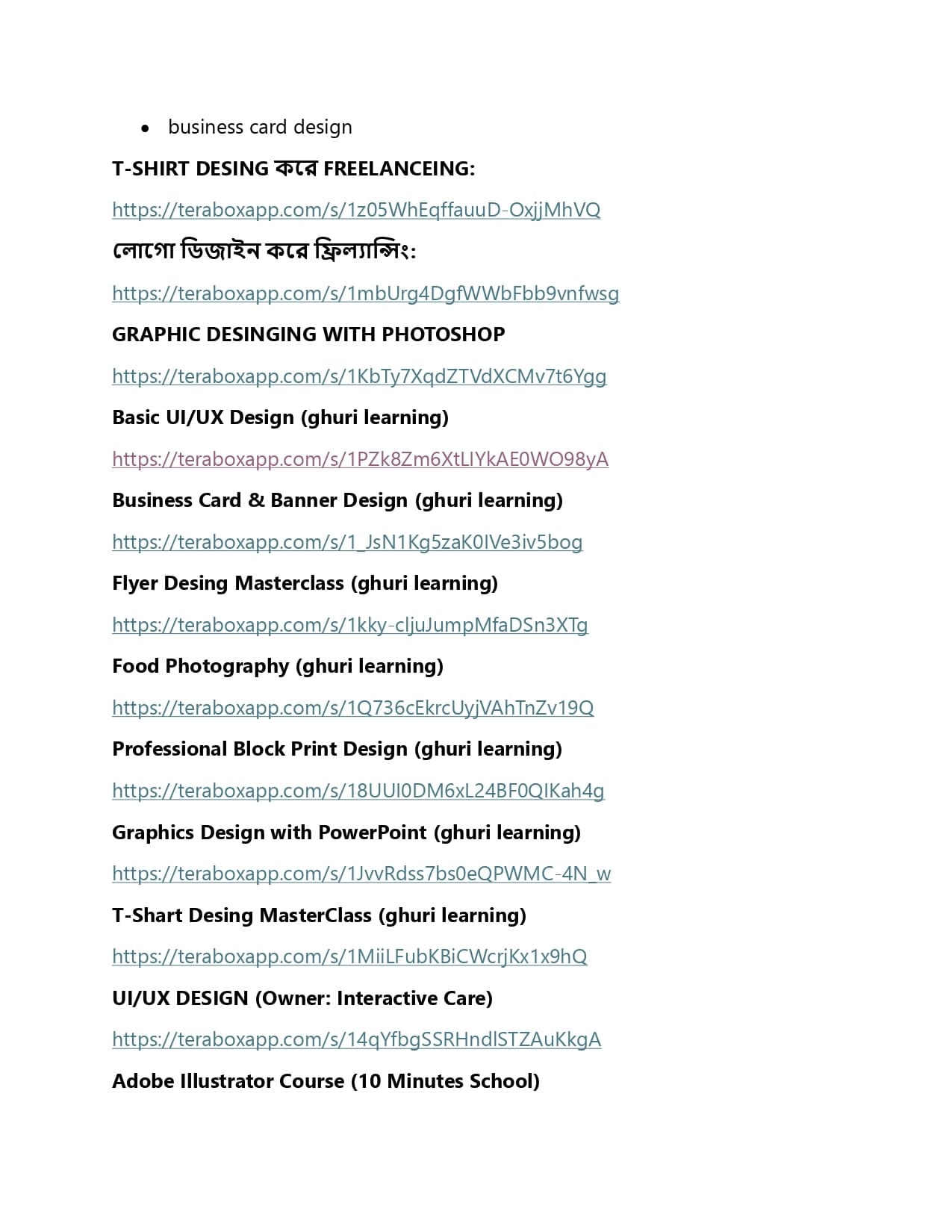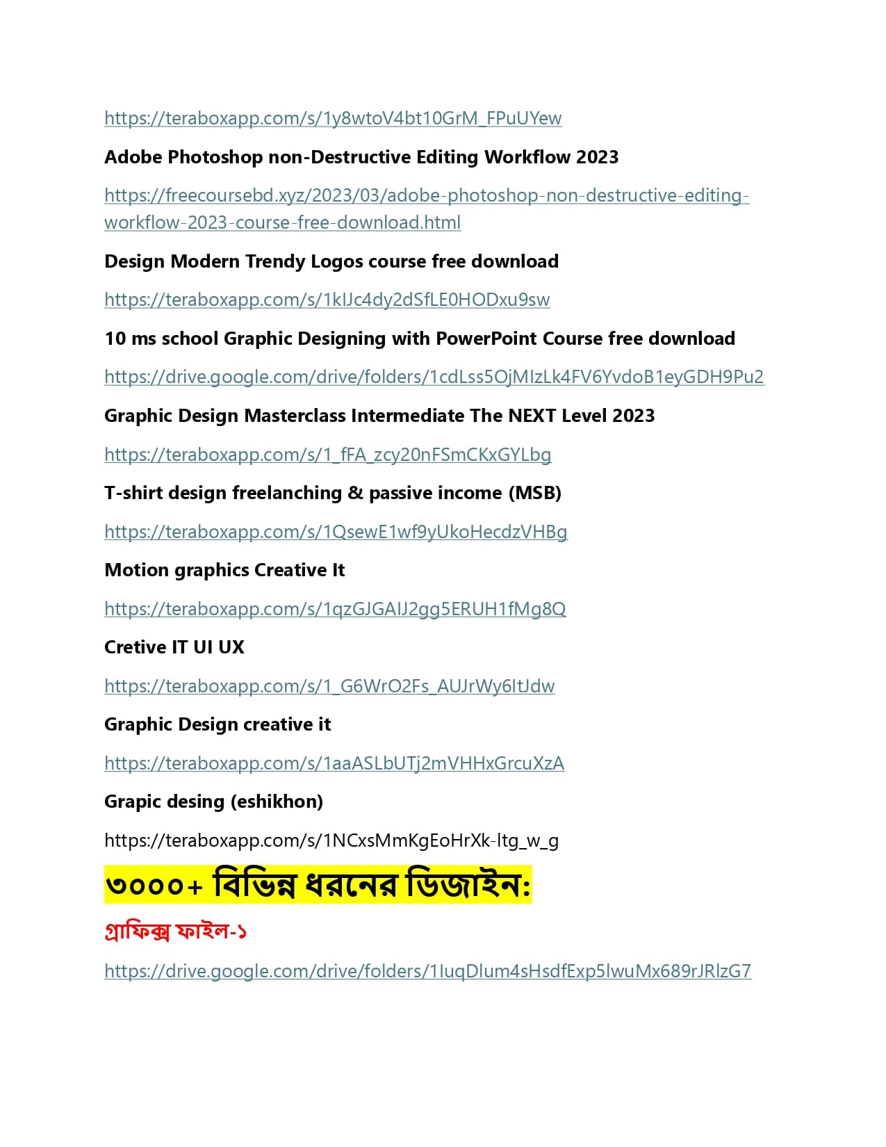 - গ্রাফিক্স ডিজাইনের অনেকগুলো কোর্স